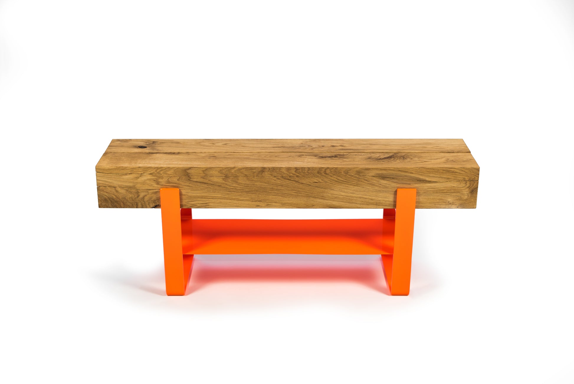 Orangene Sitzbank Bank Garderobe Schuhschrank Sideboard Eiche Eichenbalken