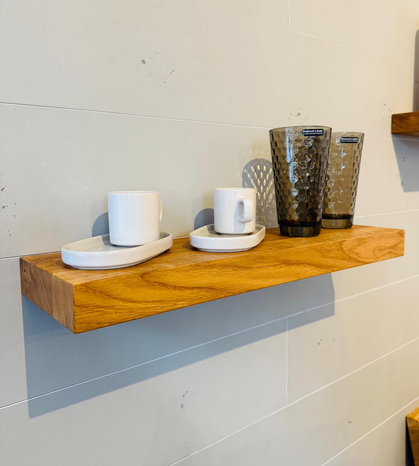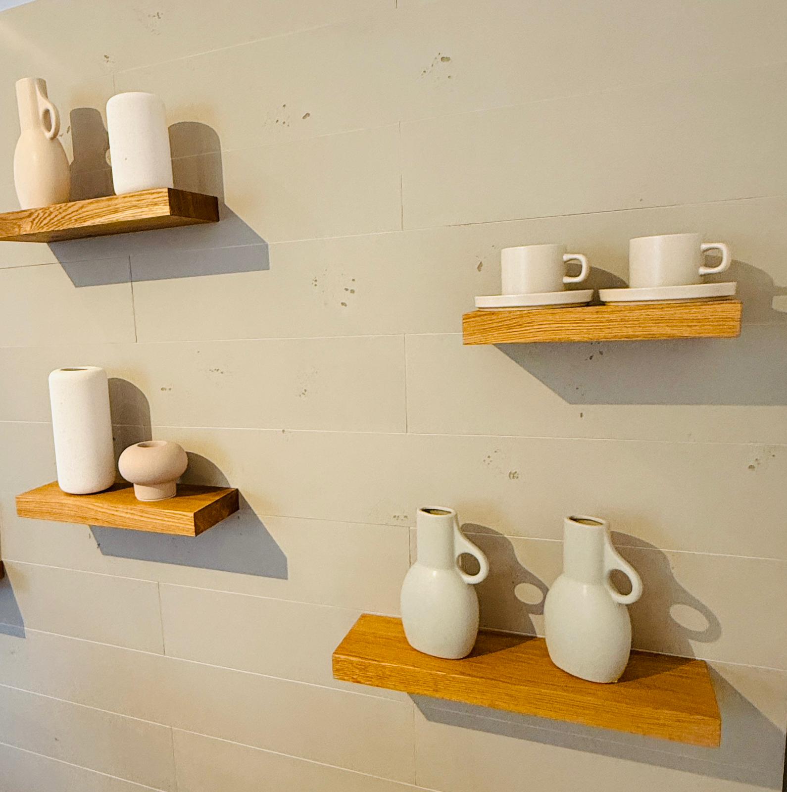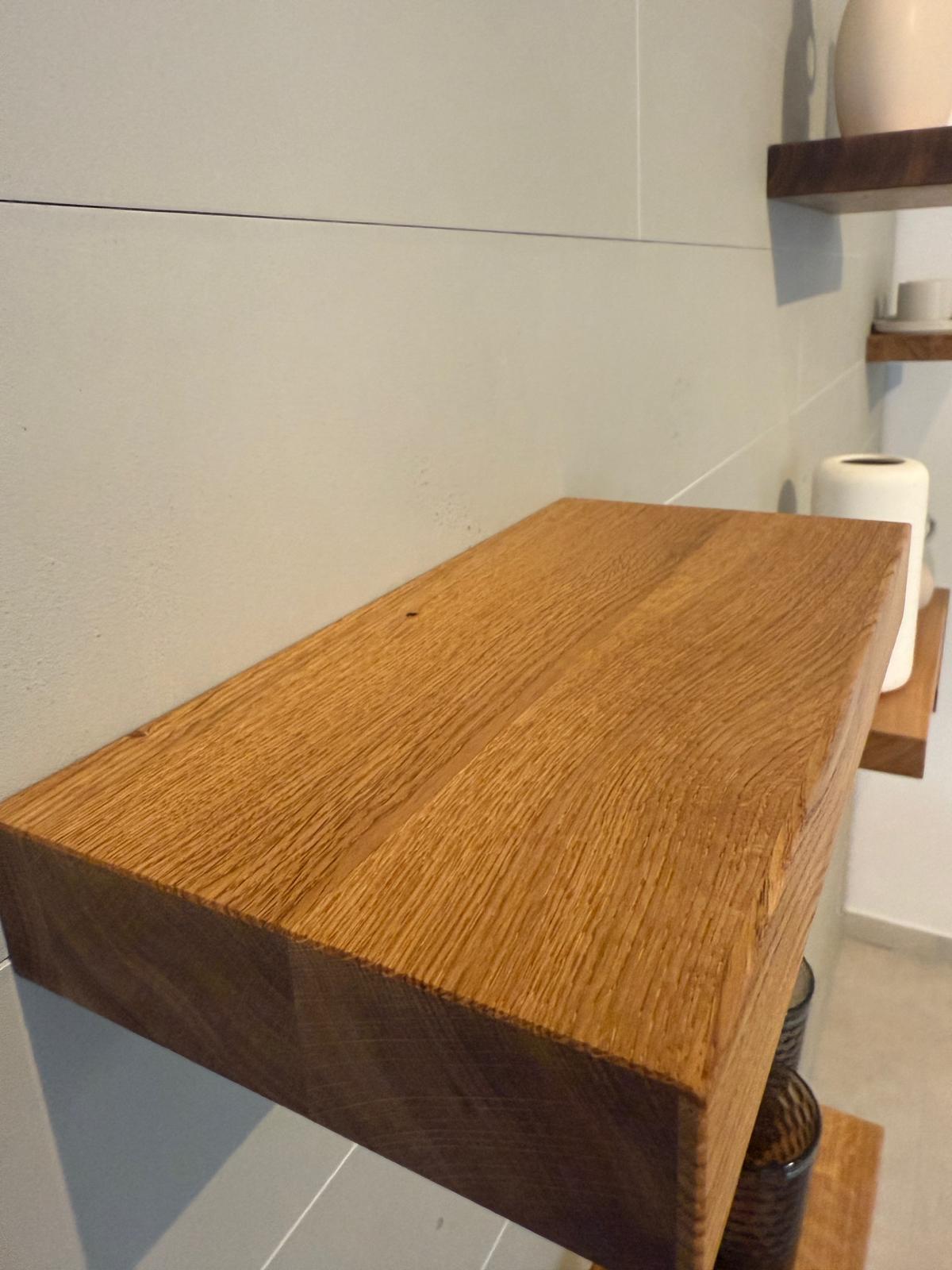 Bringen Sie natürliche Eleganz in Ihr Zuhause mit unseren schwebenden Wandregalen aus massiver Eiche – für ein stilvolles und funktionales Ambiente!
