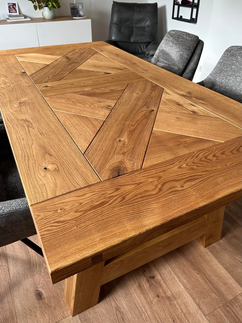 Massiver Landhaus Esstisch aus Eiche- handgefertigt, gebürstete Oberfläche